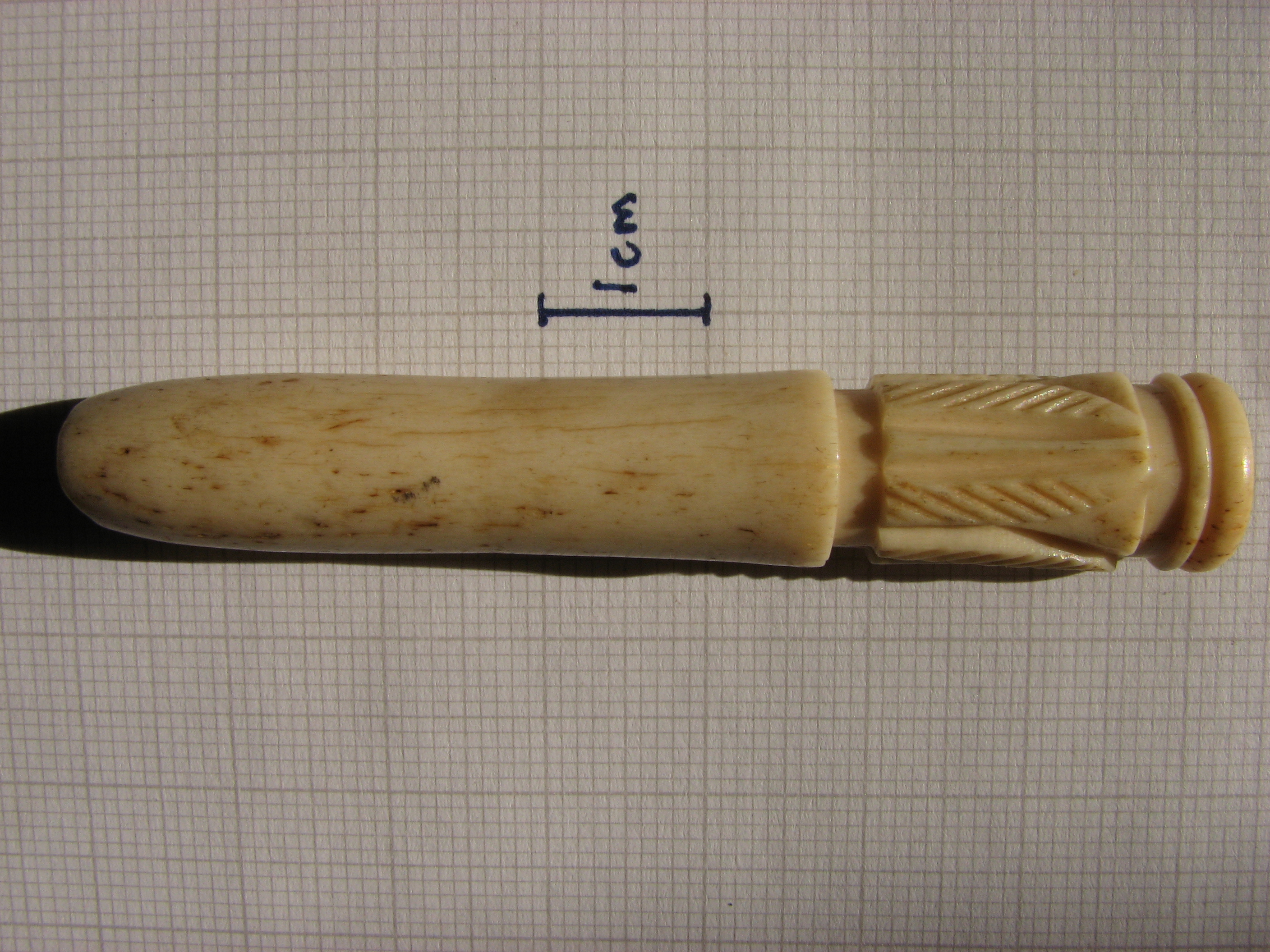 Again, we're uncertain what this is - it may be the bone handle from a pen, but please let us know if you have other ideas.