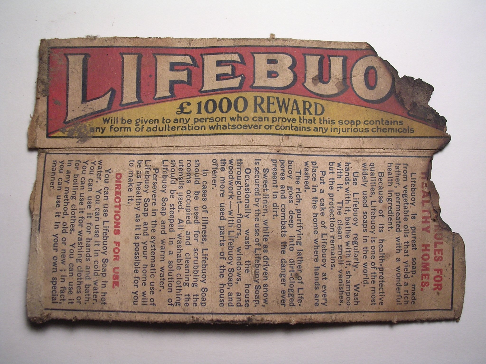This Lifebuoy Soap wrapper clearly predates modern restrictions on the wording of product claims.