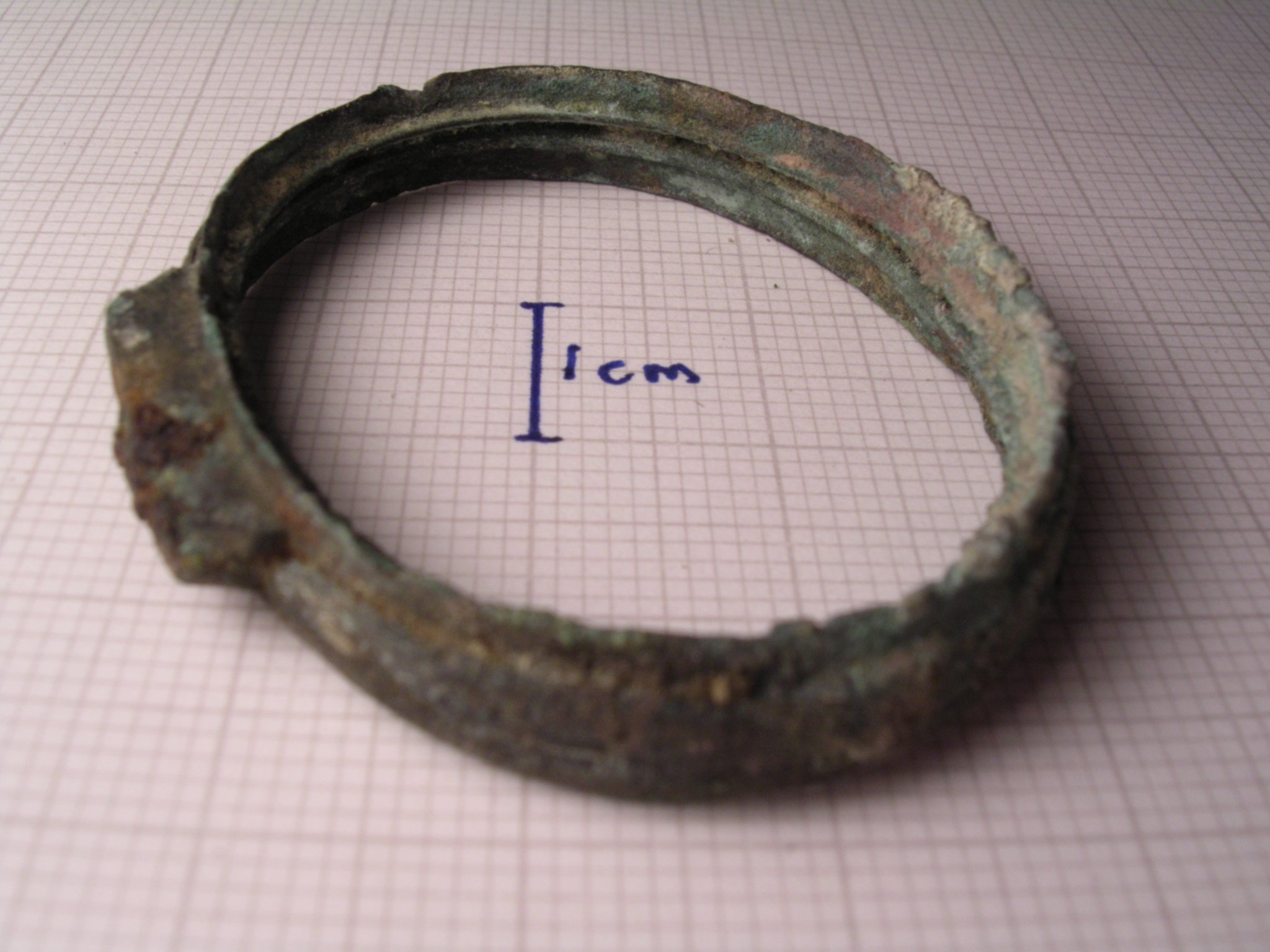 - A metal ring - looks like a metal frame with a hinge. Probably brass, and might have had leather inserts, to hold two photographs, but which have since rotted.